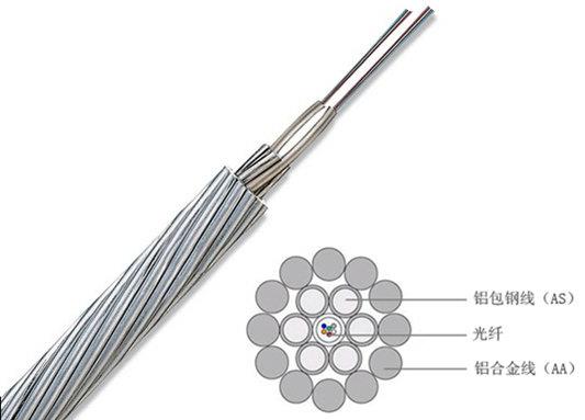 OPGW光纜:這種光纜是把光纖裝在鋁管內,再把多根鋁管和鋼絲絞合,為全金屬結構,通過兩端接地來防雷。