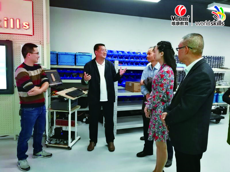 進入唯康教育研發中心,唯康教育產品經理黃國成先生向惠州市技師學院張余慶院長等一行介紹了公司依據世界技能大賽標準正在研發的新產品、新技術及教學轉化應用的詳細情況,并與張余慶院長等一行進行了熱烈的研討與交流。期間,張余慶院長對唯康教育開發的新產品給予了肯定與認可。并親自就唯康教育研發中心的研發理念、教學轉化應用等方面給出了指導性建議。