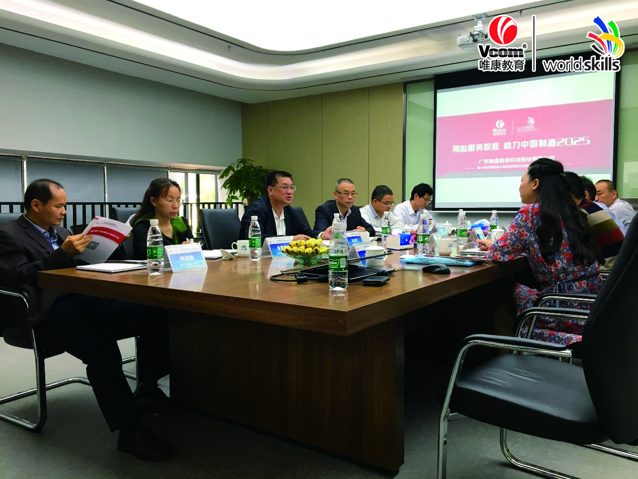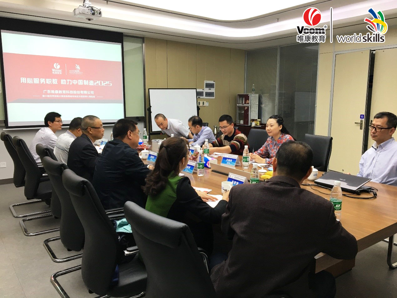 參觀完唯康教育研發中心后,雙方來到會議室,唯康教育副總經理孫凱利向惠州市技師學院張院長一行做公司介紹。